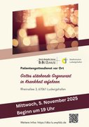 Herzliche Einladung an kranke Menschen und ihre Angehörigen zum nächsten Patientengottesdienst am Mittwoch, 5. November 2025, um 19 Uhr im Dietrich-Bonhoeffer-Zentrum in der Rheinallee 3 in Ludwigshafen statt. weiterlesen
