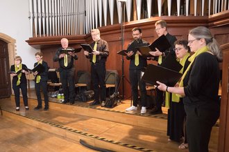 Zum großen Finale in der Lukaskirche versammelten sich neben der Gemeinde auch Sängerinnen und Sänger der Bezirkskantorei, aus dem Projektchor Süd und aus dem Kirchenchor Edigheim. Sie alle stimmten Ludwigshafens fünf Top-Kirchenlieder an. Drei Lieder lieferten sich ein Kopf-an-Kopf-Rennen, lagen nur wenige Stimmen auseinander: Auf Platz 1 landete „Großer Gott, wir loben dich" (24 Stimmen), gefolgt von „Geh aus, mein Herz, und suche Freud" (23 Stimmen) und „Von guten Mächten" (22 Stimmen). Weiter abgeschlagen auf Platz 4 kam „Weißt du, wie viel Sternlein stehen" (12 Simmen). Platz 5 wurde doppelt vergeben. Jeweils 11 Stimmen entfielen auf „Der Mond ist aufgegangen" und „Vertraut den neuen Wegen". Insgesamt wurden knapp 140 Stimmzettel abgegeben.