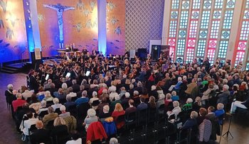 Unter dem Titel „Schicksal und Sehnsucht" verspracht das Programm mit Werken von Mozart, Elgar und Tschaikowsky einen Abend voller emotionaler Tiefe. Rund 200 Zuhörer fanden den Weg in die Kulturkirche, um gemeinsam Musik zu erleben und damit gleichzeitig die Hospiz- und Palliativarbeit in der Stadt und dem Rhein-Pfalz-Kreis zu unterstützen.