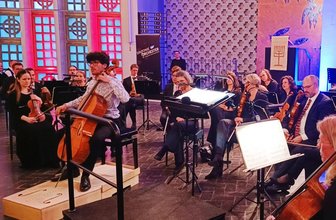 Mit Mozarts Ouvertüre zur „Hochzeit des Figaro“ begann der Konzertabend unter der Leitung von Markus Neumeyer mit heiter-leichten Klängen. Es folgte das 1919 entstandene Cellokonzert e-Moll von Edward Elgar, dem letzten großen Werk des Komponisten. „Witz und tiefste Melancholie wechseln sich ständig ab. Es ist ein Werk seiner Zeit, geprägt vom Krieg“, so Neumeyer in seiner Einführung. Herausragend hier die musikalische Leistung von Solist David Neuhaus, der das Werk, das häufig als eines der melancholischsten der Musikgeschichte bezeichnet wird, mit viel Einführungsvermögen virtuos interpretierte. Die Zuhörer dankten es ihm mit langanhaltendem Applaus und ließen ihn nicht ohne Zugabe von der Bühne. Der junge Cellist wählte die Sarabande aus Bachs 4. Cello-Suite und widmete sie dem Frieden.