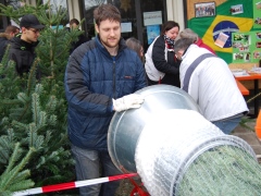 Der Gewinn aus dem Baumverkauf geht an das Café Freundschaft in der Pfingstweide, ein Begegnungsprojekt von Flüchtlingen und Deutschen zur Unterstützung von Flüchtlingen, ähnlich wie das Café Asyl.