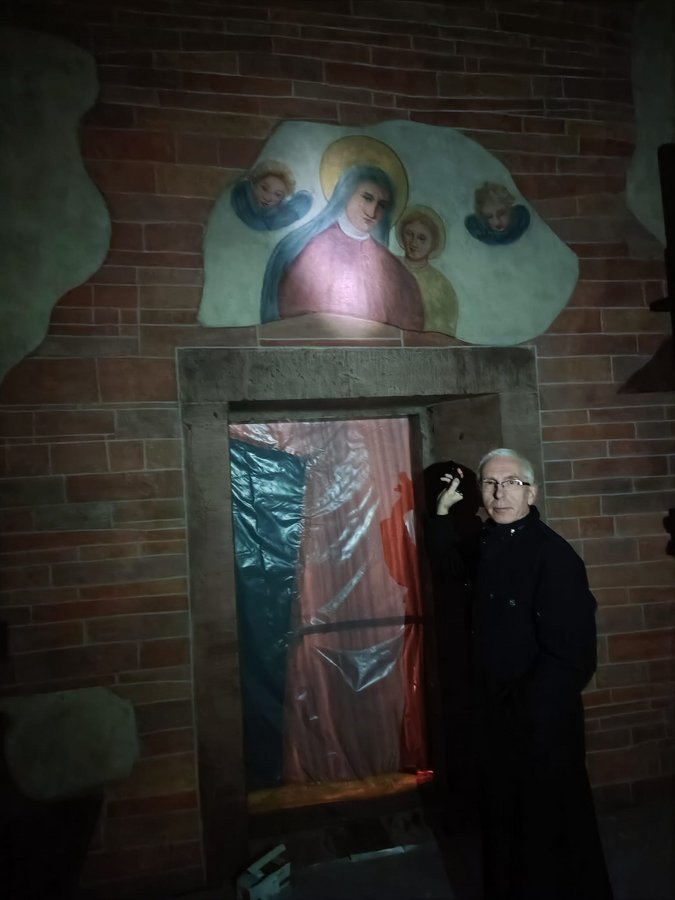 Noch mit Taschenlampe: ein Blick auf die restaurierten Fresken in der Loretokapelle