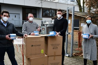 Jeder braucht sie derzeit, doch nicht jeder kann sie sich leisten: eine Atemschutzmaske. Vier große Kartons mit insgesamt 6000 KN95-Masken hat der Mannheimer Fachgroßhandel für Reinigungsbedarf, die Heinrich Abken GmbH, jetzt für „Mahlze!t LU“ gespendet.