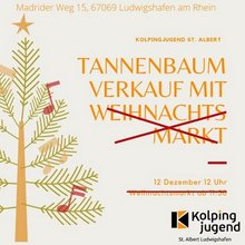 Die Kolpingjugend St. Albert Ludwigshafen-Pfingstweide verkauft wie jedes Jahr wieder Nordmanntannen. Die Aktion findet am 12. Dezember 2020 ab 12 Uhr auf dem Parkplatz der Kath. Kirche St. Albert in der Pfingstweide statt. Um das Infektionsrisiko zu reduzieren, wird die Veranstaltung leider ohne den traditionellen Weihnachtsmarkt um den Baumverkauf stattfinden. Wir beschränken uns auf den Baumverkauf und werden diesen unter Berücksichtigung der Infektionsschutzmaßnahmen durchführen.