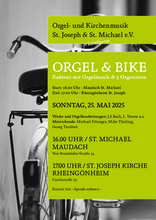 Der Förderverein Orgel & Kirchenmusik St. Joseph & St. Michael e. V. lädt am Sonntag, 25. Mai 2025, zu einem besonderen Konzertnachmittag ein, der Orgelmusik und Fahrradfahren kombiniert. Mit Dekanatskantor Georg Treuheit, Michael Filsinger und Mike Thisling übernehmen gleich drei Organisten die musikalische Gestaltung. Auf dem Programm stehen Werke unter anderem von J. S. Bach L. Vierne.