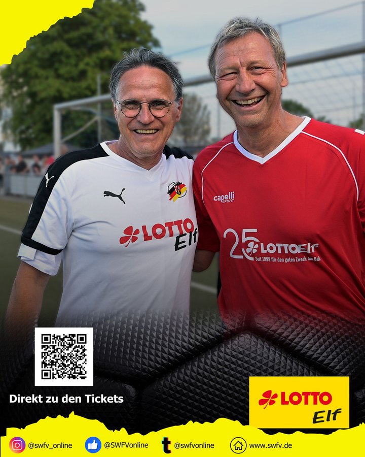 Die Lotto-Elf ist ein Fußballteam, das im Auftrag von Lotto Rheinland-Pfalz prominente Ballkünstler vereint. Seit der Gründung 1999 haben die Lotto-Elf-Spieler über vier Millionen Euro für soziale Zwecke eingespielt. Die Zuschauer können sich auf eine prominent besetzte Lotto-Elf mit ehemaligen National- und Bundesligaspielern freuen. Dazu gehören Europameister Hans-Peter Briegel, Welt- und Europameister Wolfgang Kleff und Edgar „Euro-Eddy“ Schmitt als Coachs, auf dem Feld stehen unter anderem Weltmeister Guido Buchwald, Europameister Manni Kaltz, Europameisterin Lena Goeßling sowie der Deutsche Meister Timo Hildebrand. Als Gäste erwartet werden auch der dreifache Weltschiedsrichter Dr. Markus Merk, FCK-Legende Axel Roos, ZDF-Sportmodertor Norbert König und DFB-Vizepräsident Thomas Bergmann, der Präsident des Südwestdeutschen Fußballverbandes.